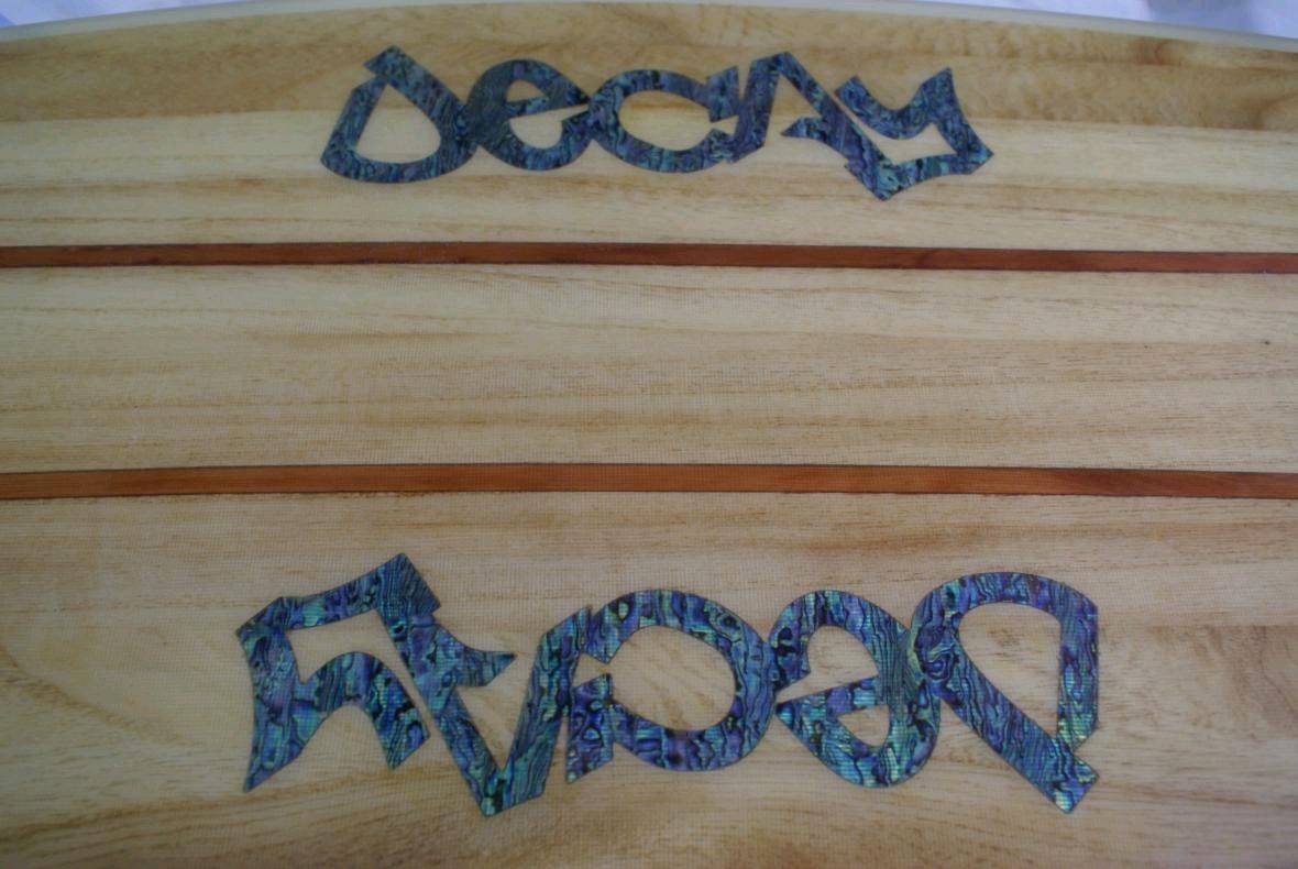 Redwood stringers with paua shell inlays