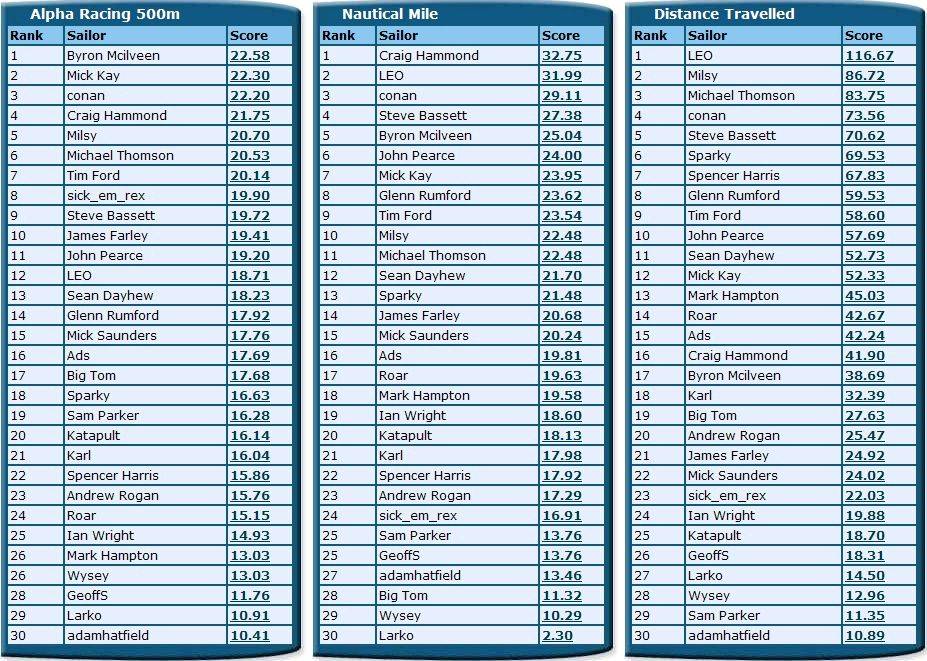 NSW GPS TEAM CHALLENGE RANKINGS FOR JUNE 2011
