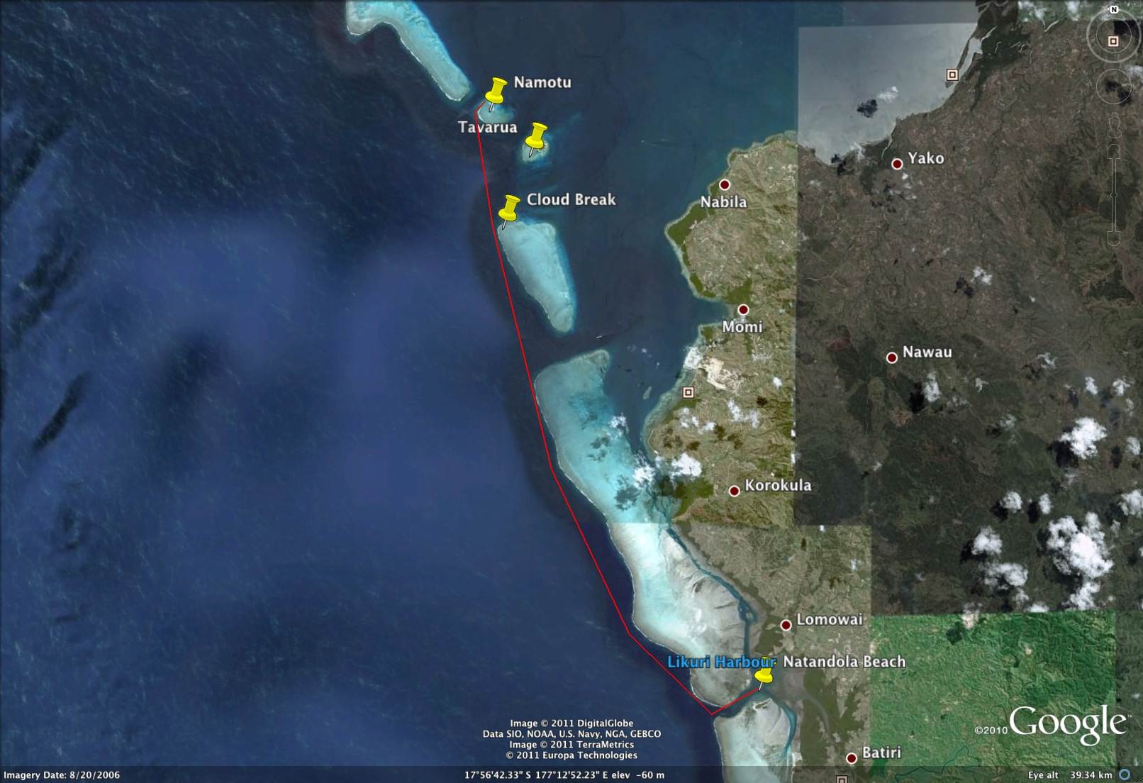 Namotu 19 mile Downwind Race Course