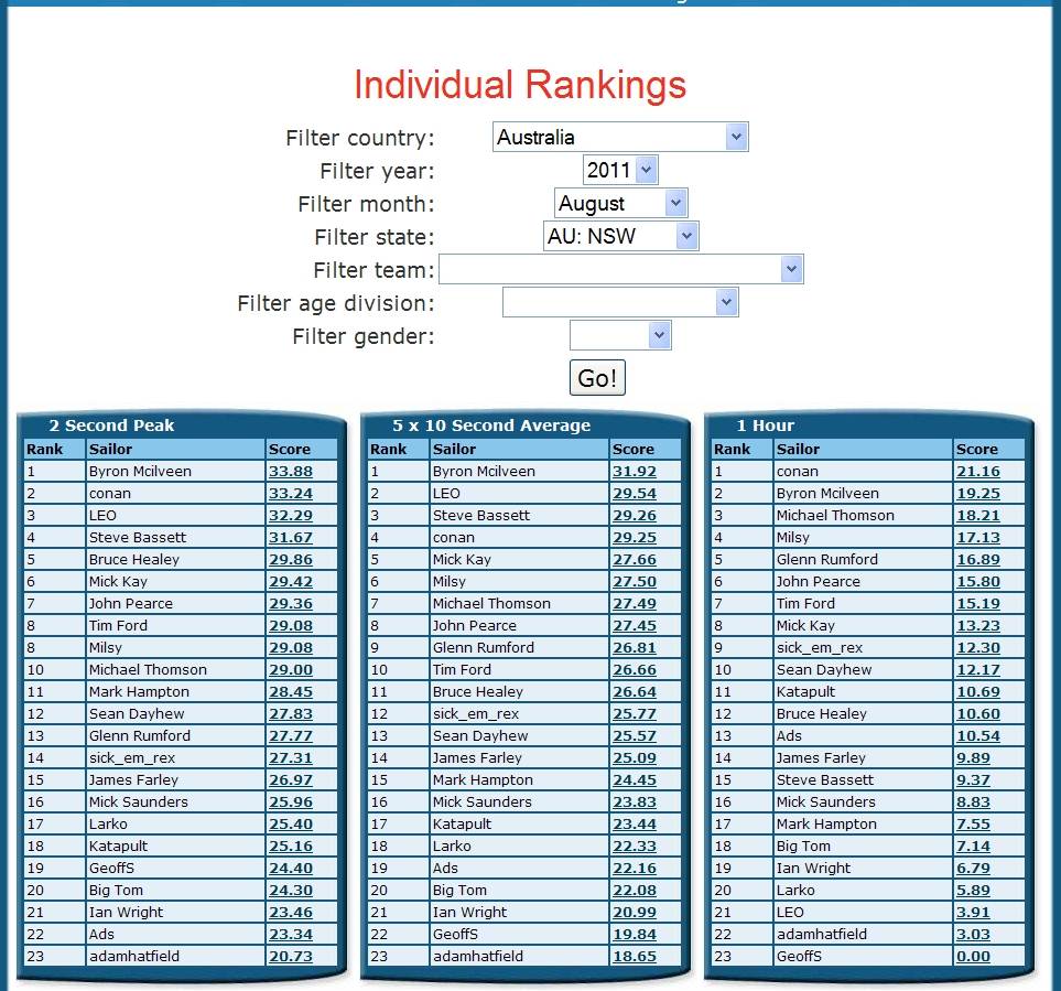 NSW GPS TEAM CHALLENGE RANKINGS FOR AUGUST 2011