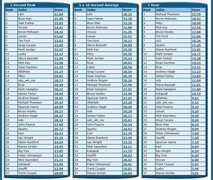 Windsurfing NSW Rankings Sept B
