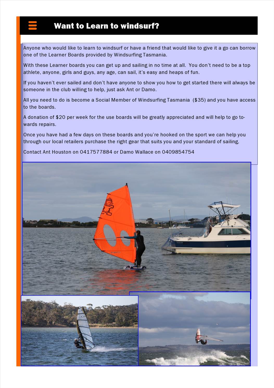 Want to learn to windsurf in Southern Tas ?