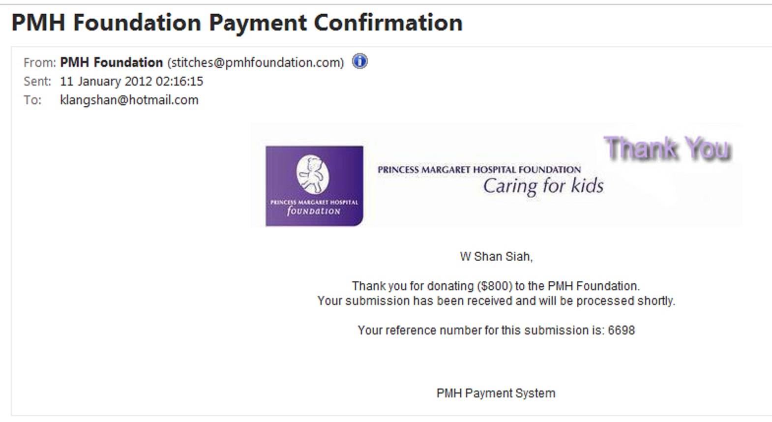 Other PMH Foundation Receipt