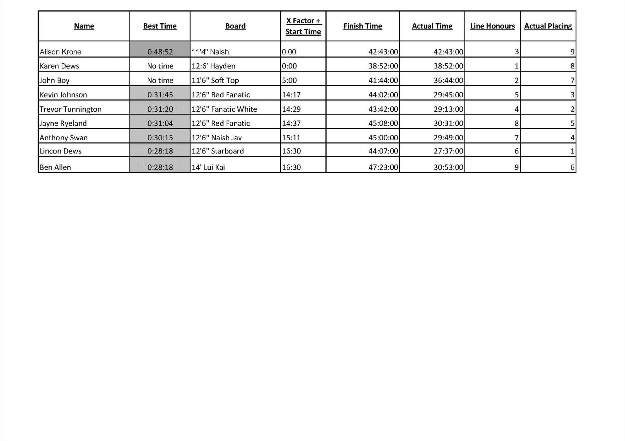 Stand Up Paddle Race 5 Results