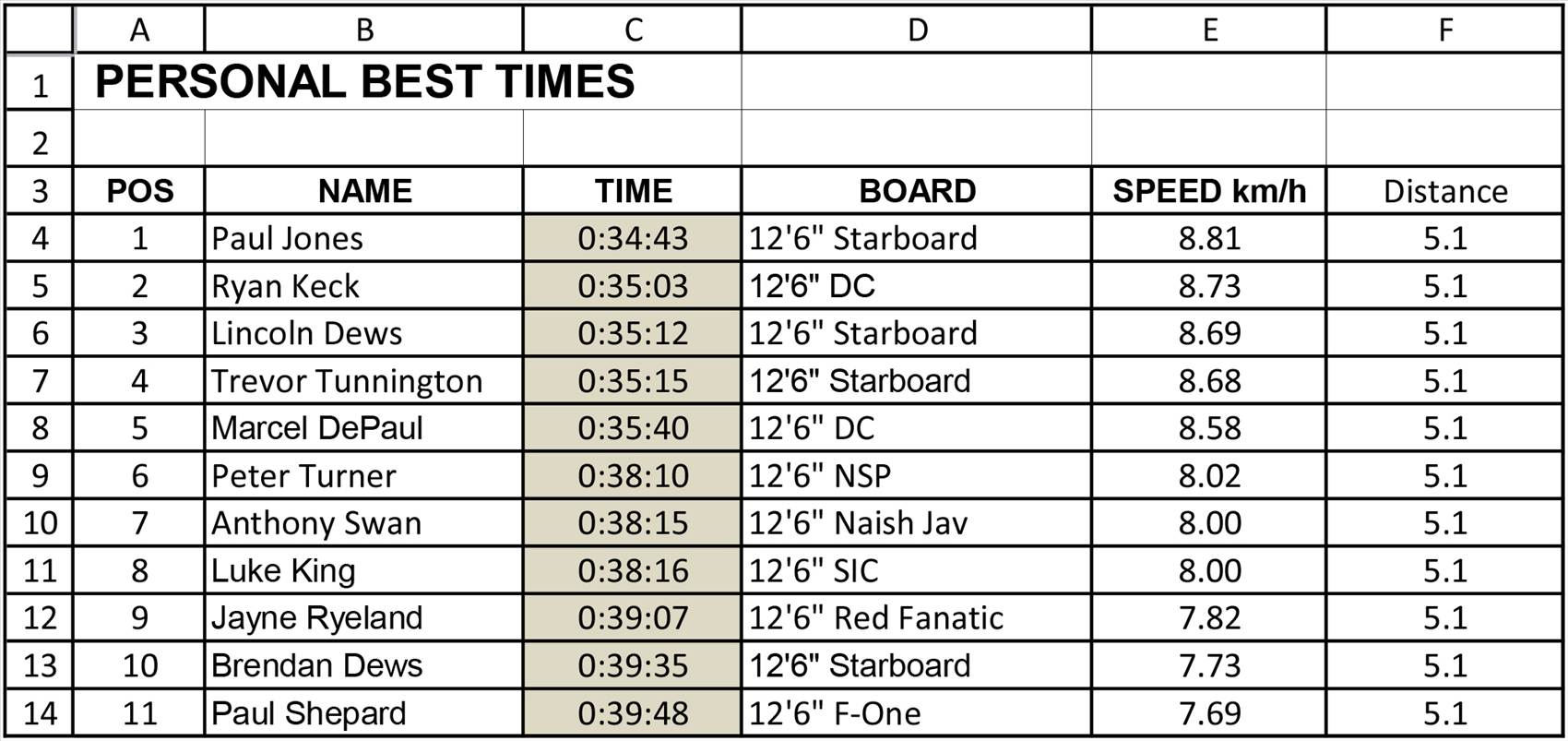 Stand Up Paddle BOP Leader Board