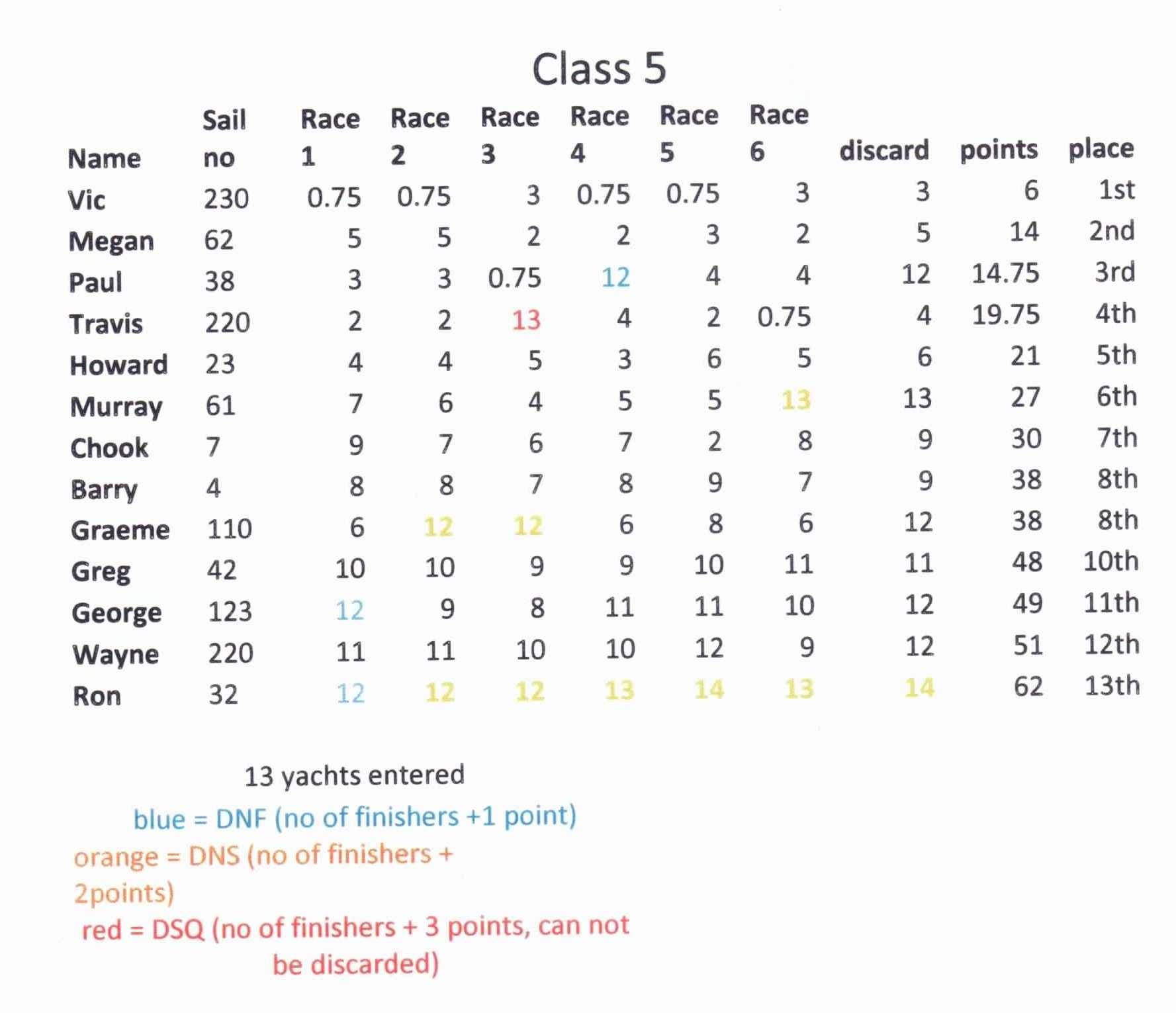 Land Yachting class 5 results