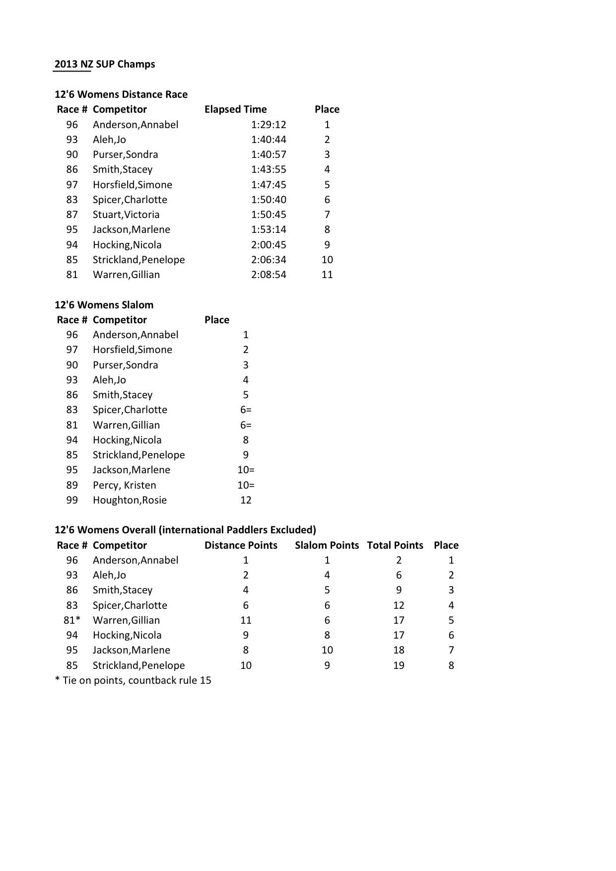 Stand Up Paddle NZSUP 2013 126 Woman Combined