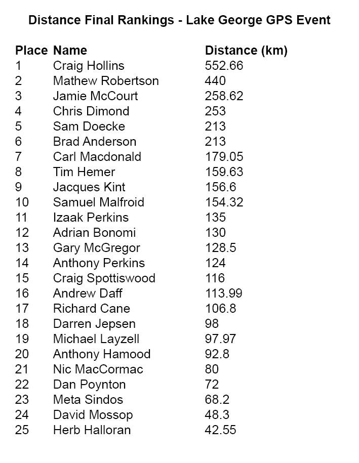 6 Final Rankings Distance Lake George GPS Event
