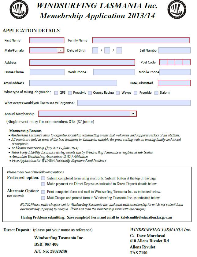 Windsurfing WT Membership form