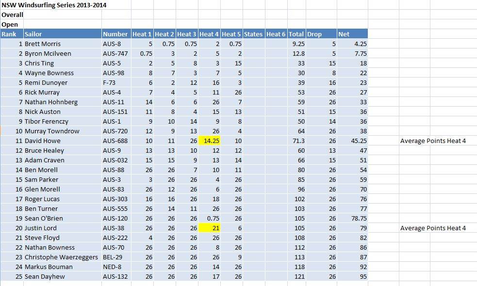 Open - NSW Windsurfing Series 2013-2014 after 5 heats