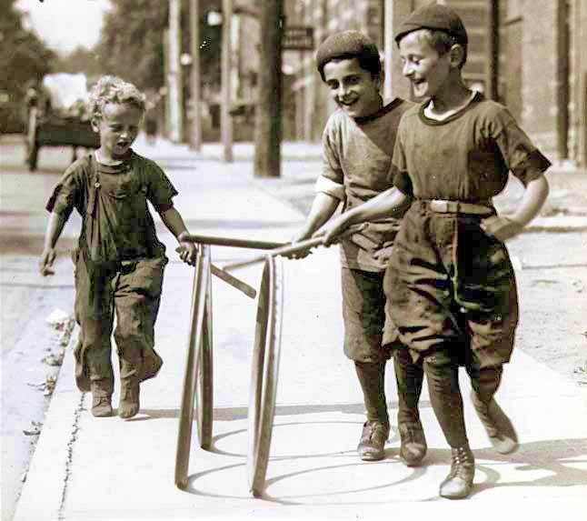Boys with hoops on Chesnut Street