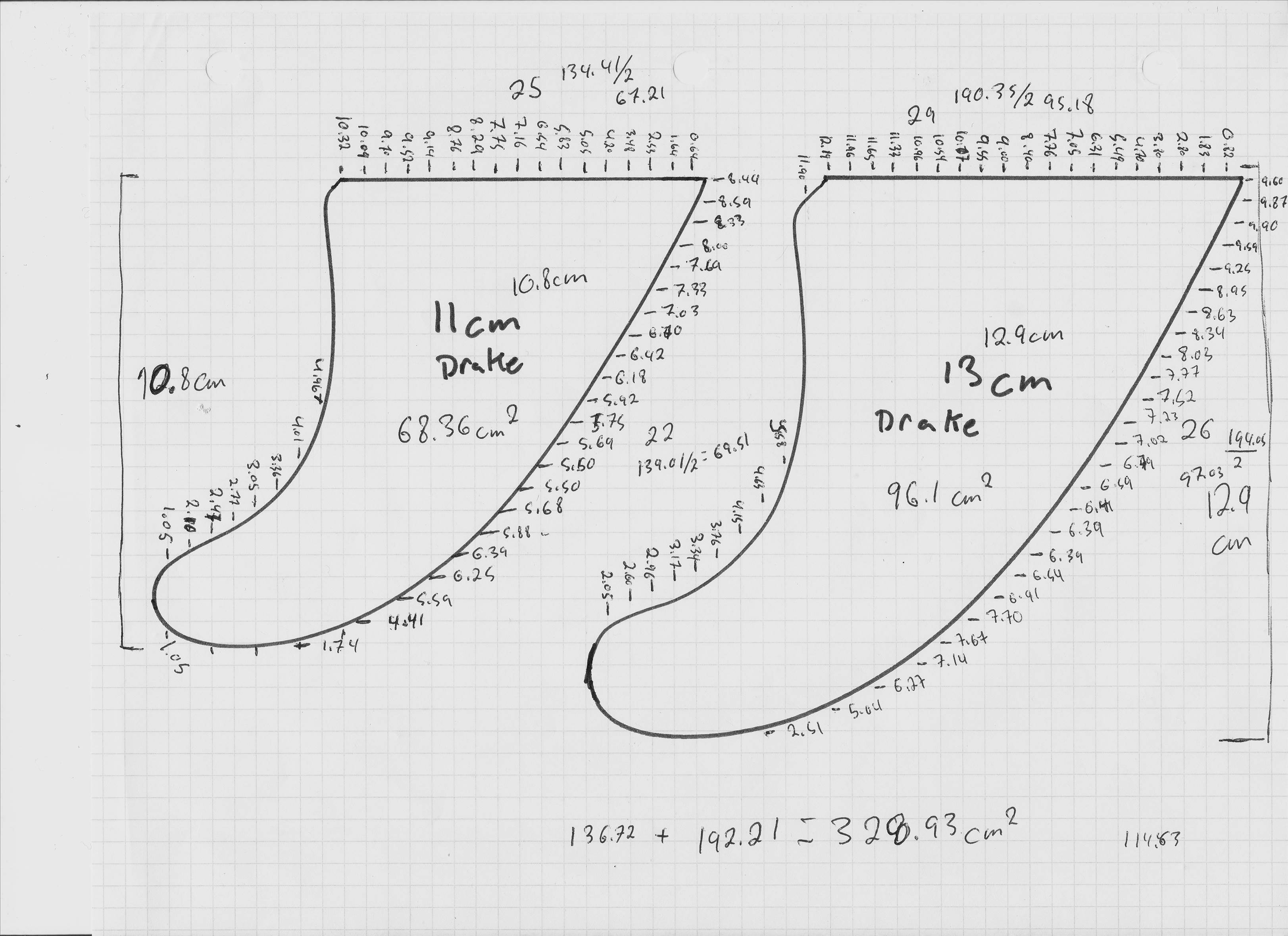 Drake natural wave 11cm and 13cm areas calculated 001