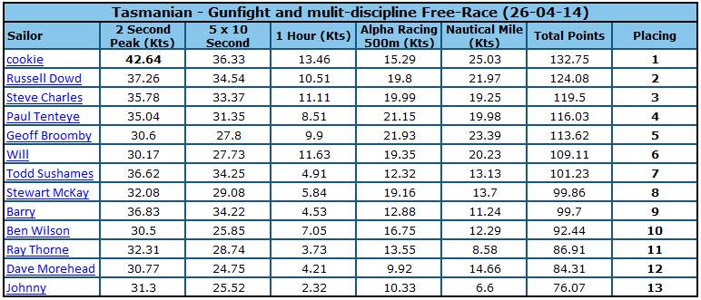 Saturday 26th Gunfight and multi-FreeRace results