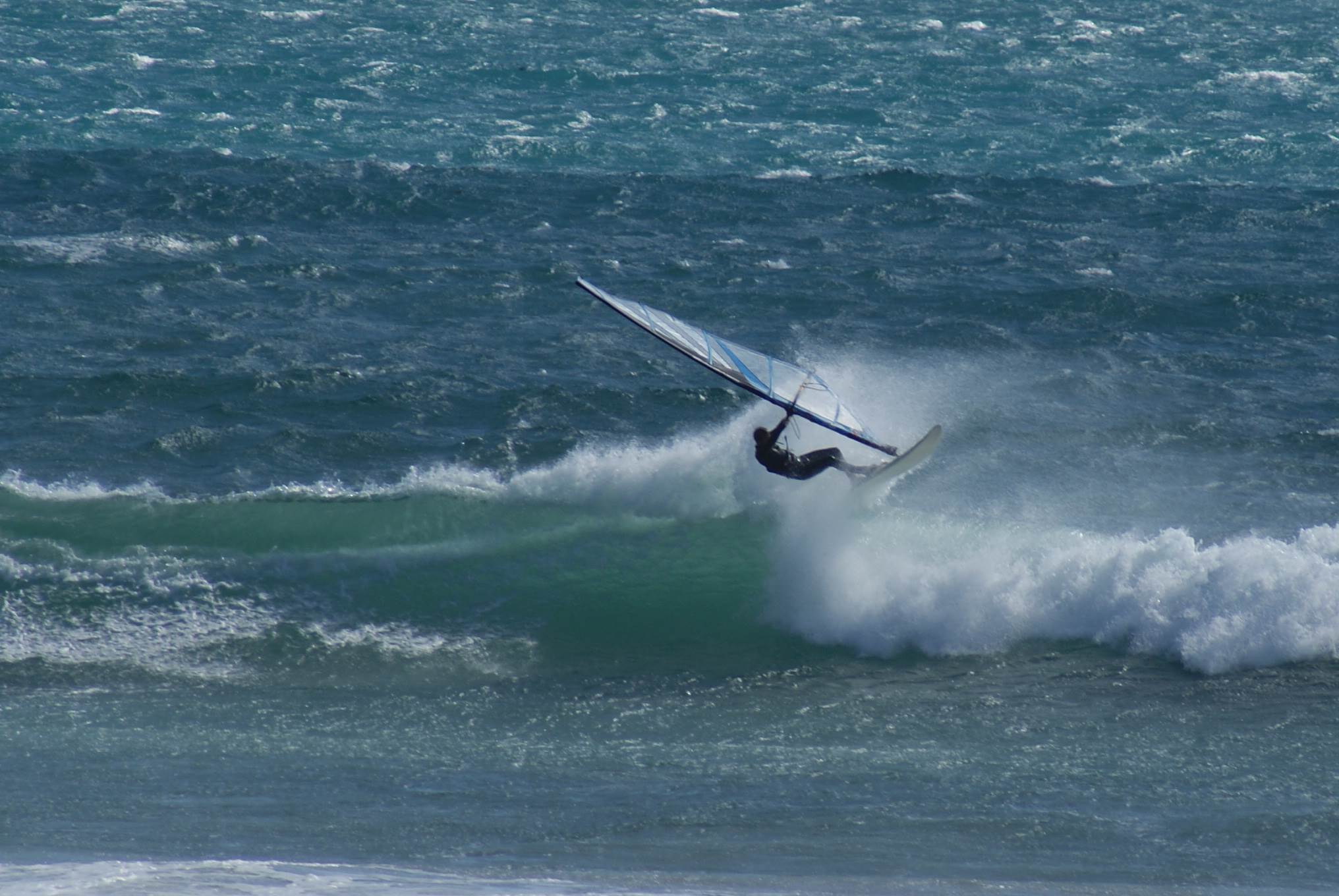 Windsurfing Super Pipe 25 knots low tide