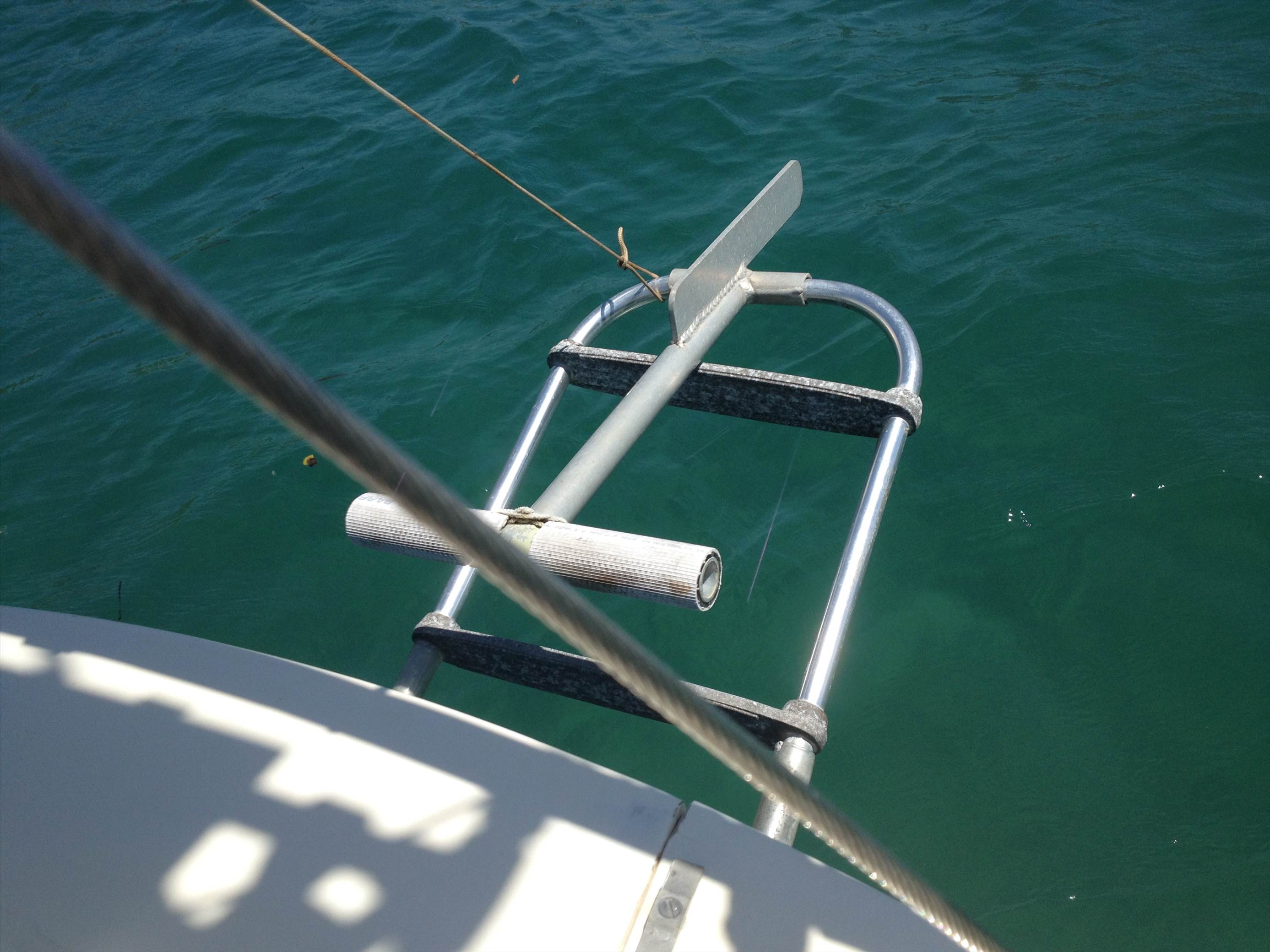 Getting back on the boat fron in the water