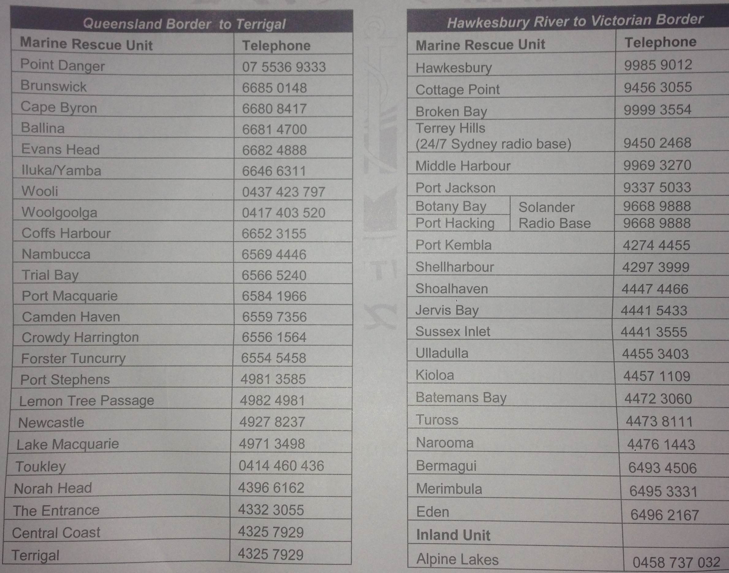 Leaving Sydney going N or S who do I contact