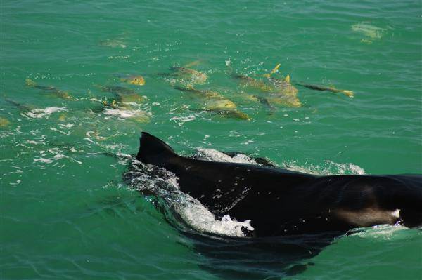 Other fish following a manta