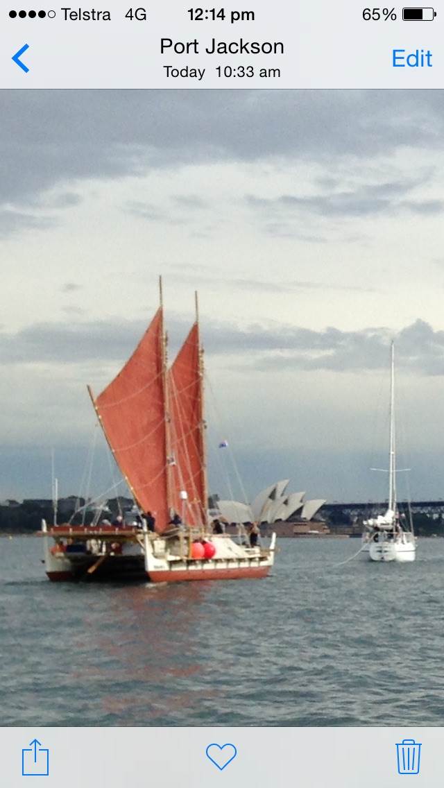Maori traditional sailing vessel in sydney harbour