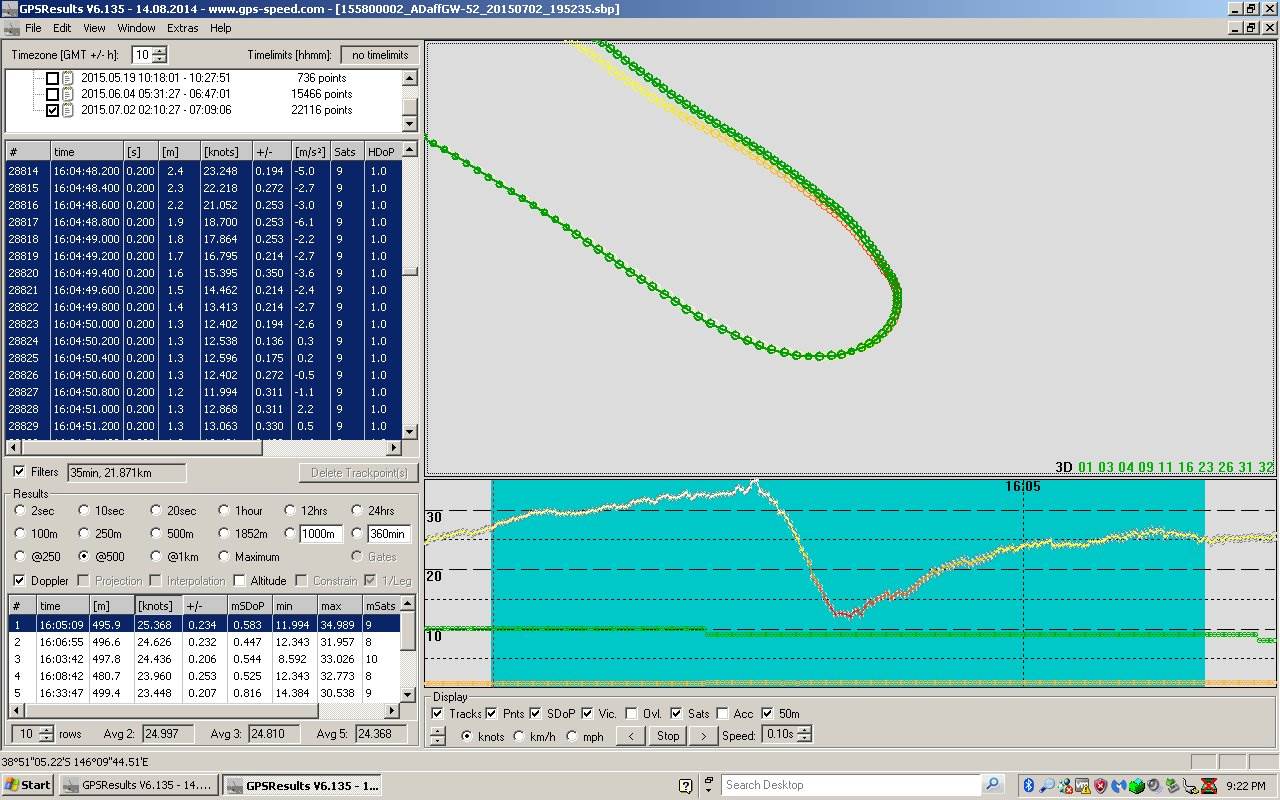 Windsurfing GPS Alpha comparisons