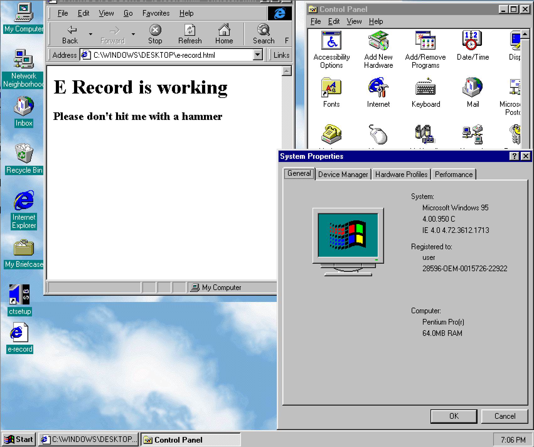 I'm trying to get the e record to be on my laptop & as that's windows 7 . I seem to need a file extension to get it to work. I'm just about at the stage of hitting it with a hammer . But I think it would be more productive to appeal to the brain trust . Help would be greatly appreciated thank you . I use it for work and I use it to do my invoices and would love to get paid this week.