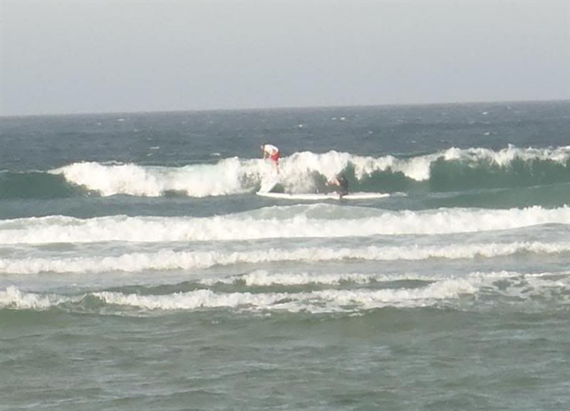 I hit the beach first out of the entire, 20 strong, crew! You don't need to know that some of the gun paddlers on the big boards stopped at the river mouth to do a bit of surfing before they headed for the sand. I was still dry from not falling in once on Mr Stability.