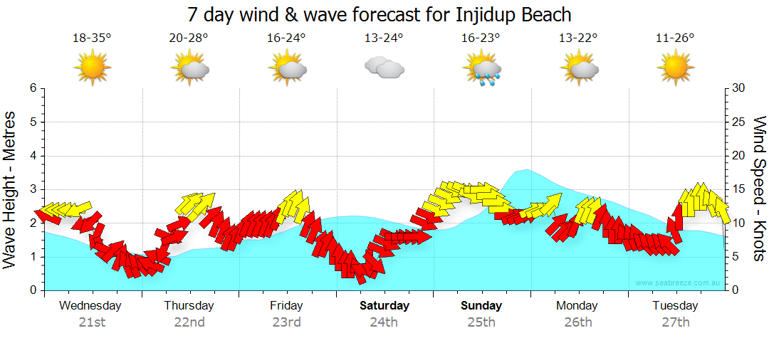 Injidup Beach Weather Yesterday