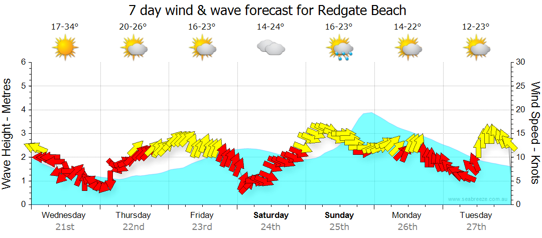 Redgate Beach Weather Yesterday