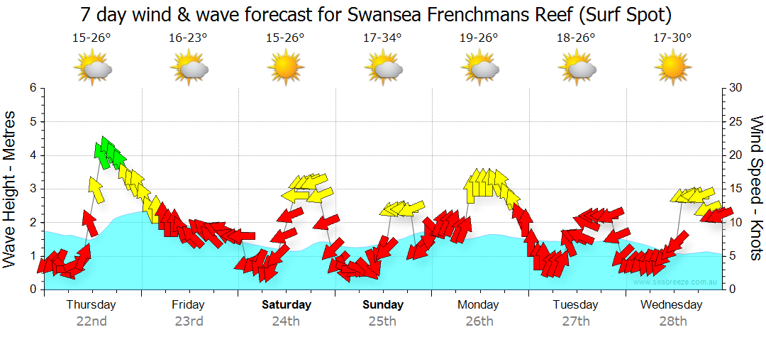 Swansea, Frenchmans Reef (Surf Spot) Weather Forecast